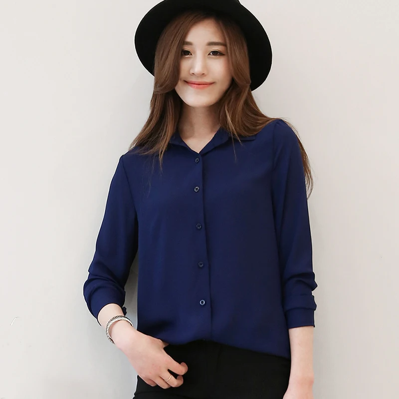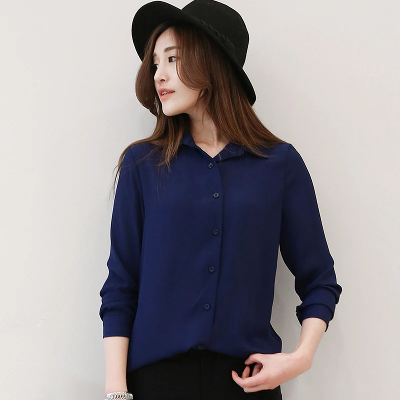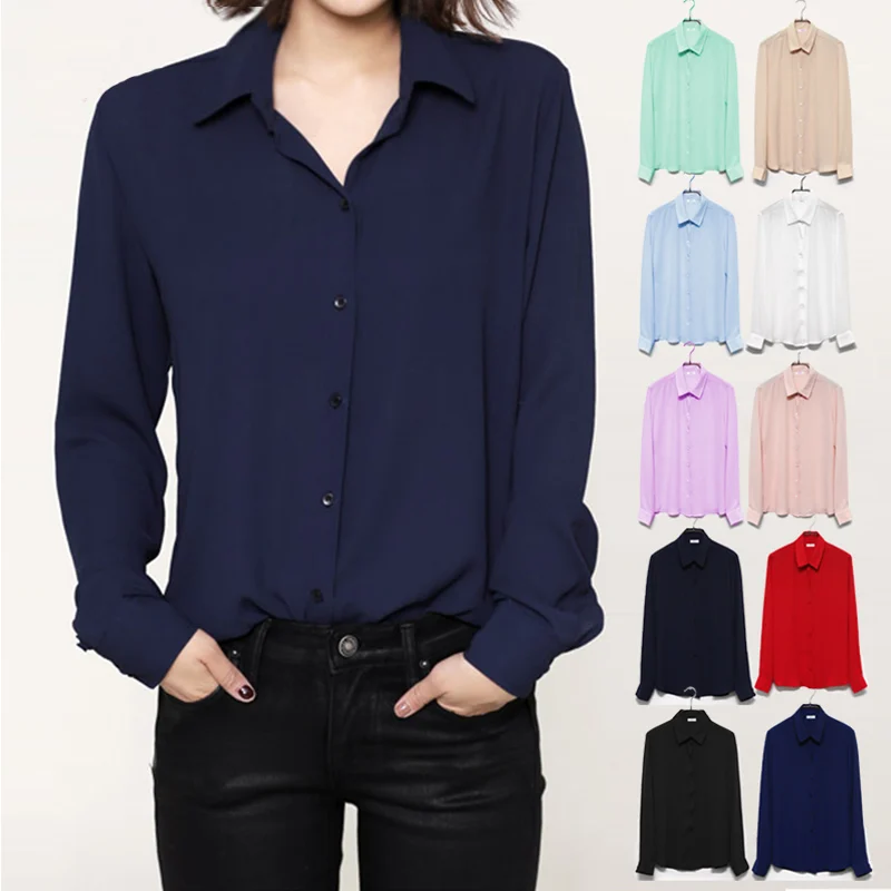 Best 2019 Hot Sale Women Shirts Blouses Long Sleeve Turn-Down Collar Solid Ladies Chiffon Blouse Tops OL