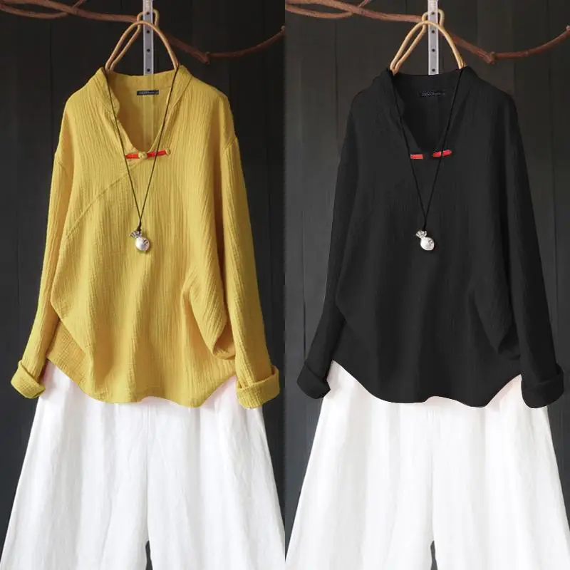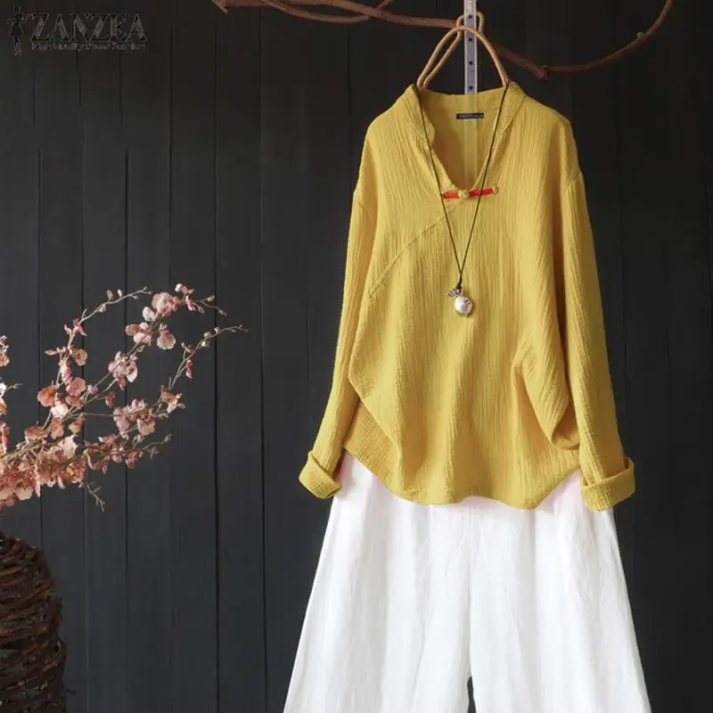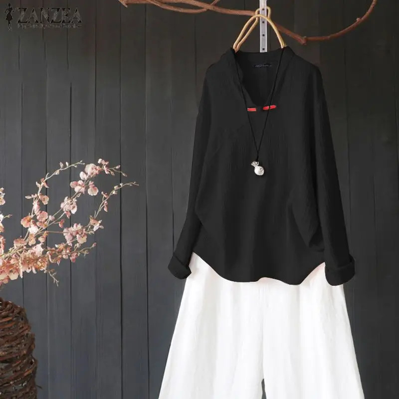 New Women Tops Blouses ZANZEA Plus Size Womens Clothing Female Casual Long Sleeve Shirt Button V Neck C