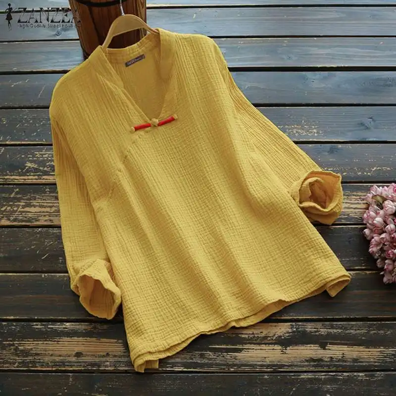 Buy Women Tops Blouses ZANZEA Plus Size Womens Clothing Female Casual Long Sleeve Shirt Button V Neck C