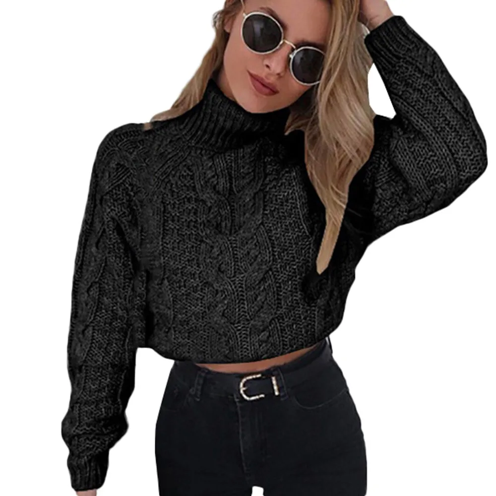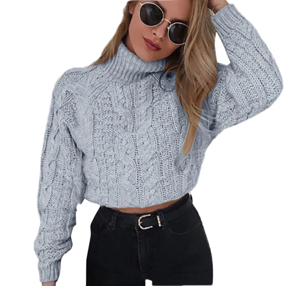 New Jaycosin Women Winter High Collar Sexy Umbilical Twist Casual Knitted Sweater Elegant O-neck Comfor