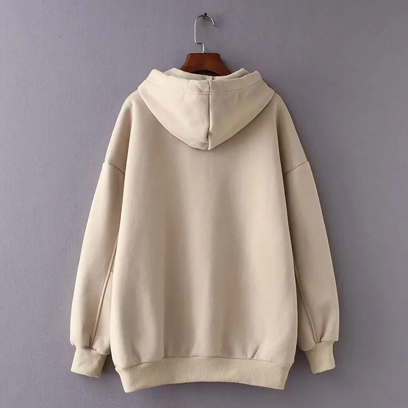 New Women Fleece Hoodie Sweatshirts Winter Japanese Fashion 2020 Oversize Ladies Pullovers Warm Pocket