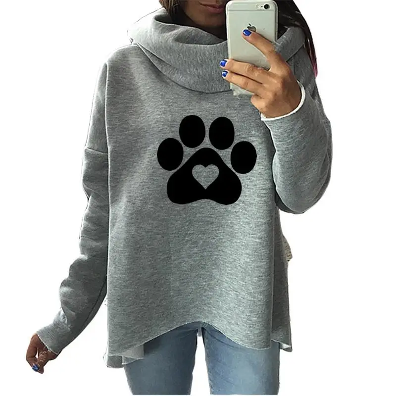 Best 2019 Fashion Cat Dog Paw Heart Print Hoodies Women Winter Hoodies Scarf Collar Fashion Casual Autum