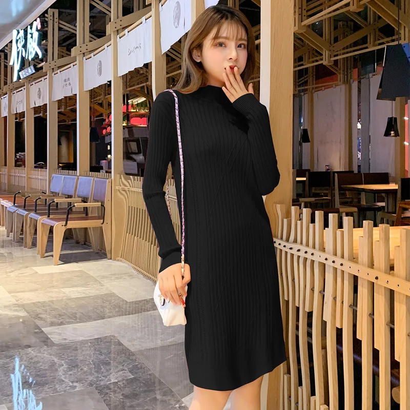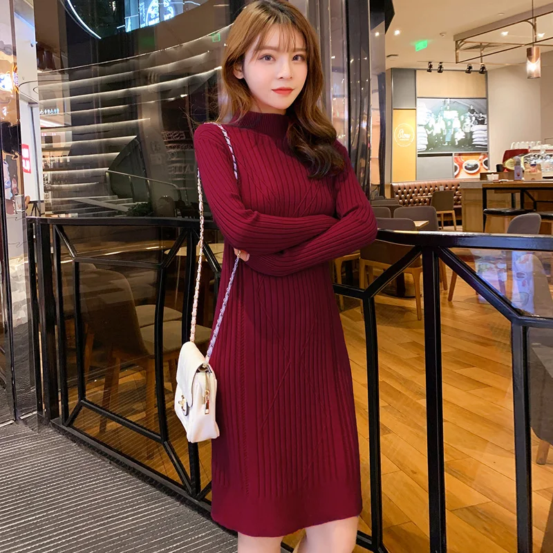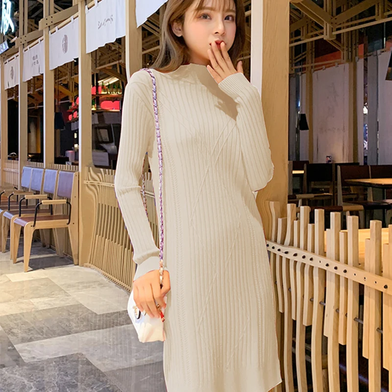 Buy 2019 New Autumn Winter Warm Sweater Dress Women Sexy Slim Bodycon Dress Female high neck Long Sleev